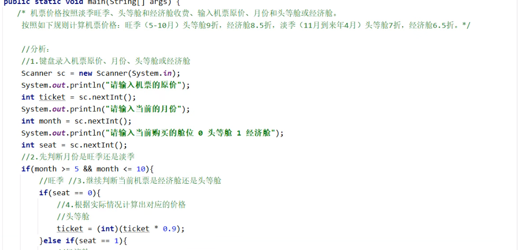 java学习第六天笔记-方法127-综合联系-买飞机票