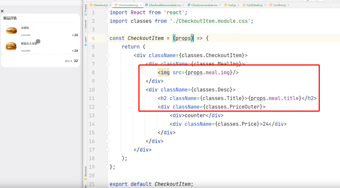 react实战笔记98:完成购物车列表显示