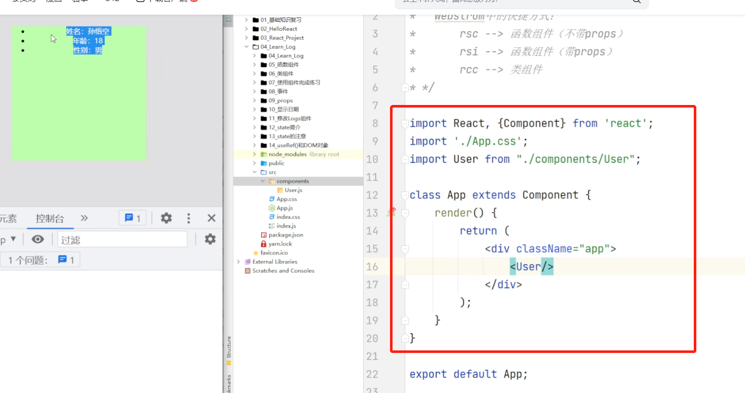 写一个子组件 父子组件