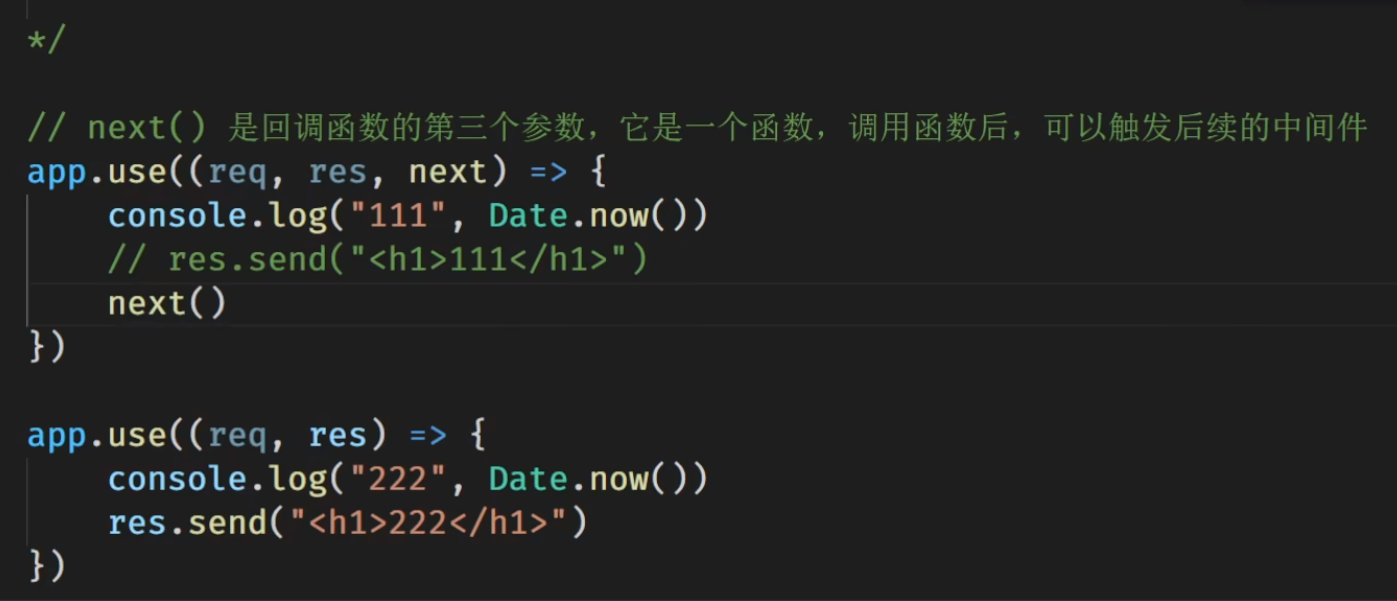 next是回调函数的第三个参数 可以触发后续的路由