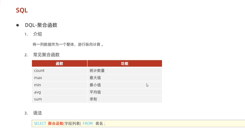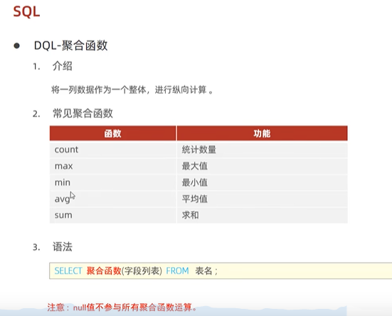 java202303java学习笔记第四十一天DQL-聚合函数