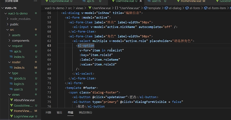前端学习笔记202310学习笔记第一百零六天-v3+ts用户列表的编辑功能实现4