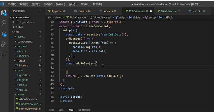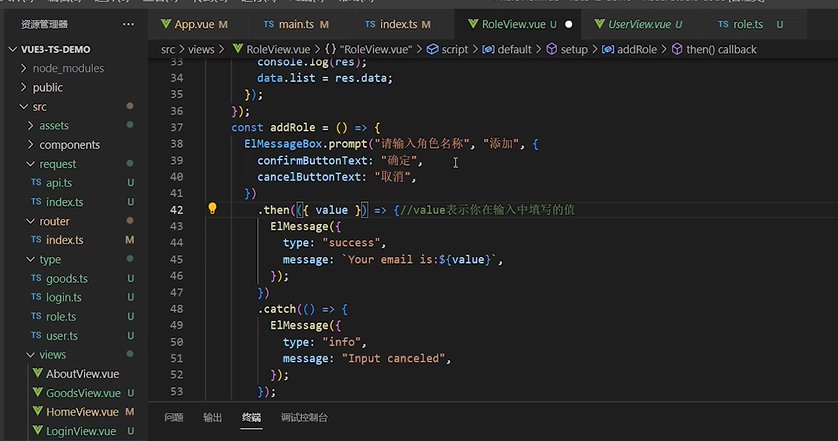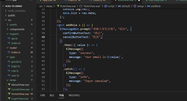 前端学习笔记202310学习笔记第一百零六天-v3+ts角色列表页面的编写和添加角色功能3