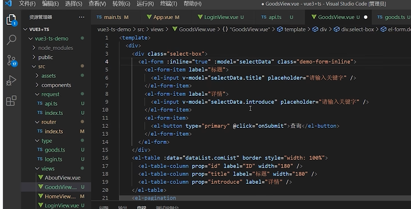 前端学习笔记202310学习笔记第一百零六天-v3+ts商品列表查询功能的实现1