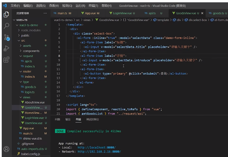前端学习笔记202310学习笔记第一百零伍天-v3+ts商品列表表单搜索的完成5