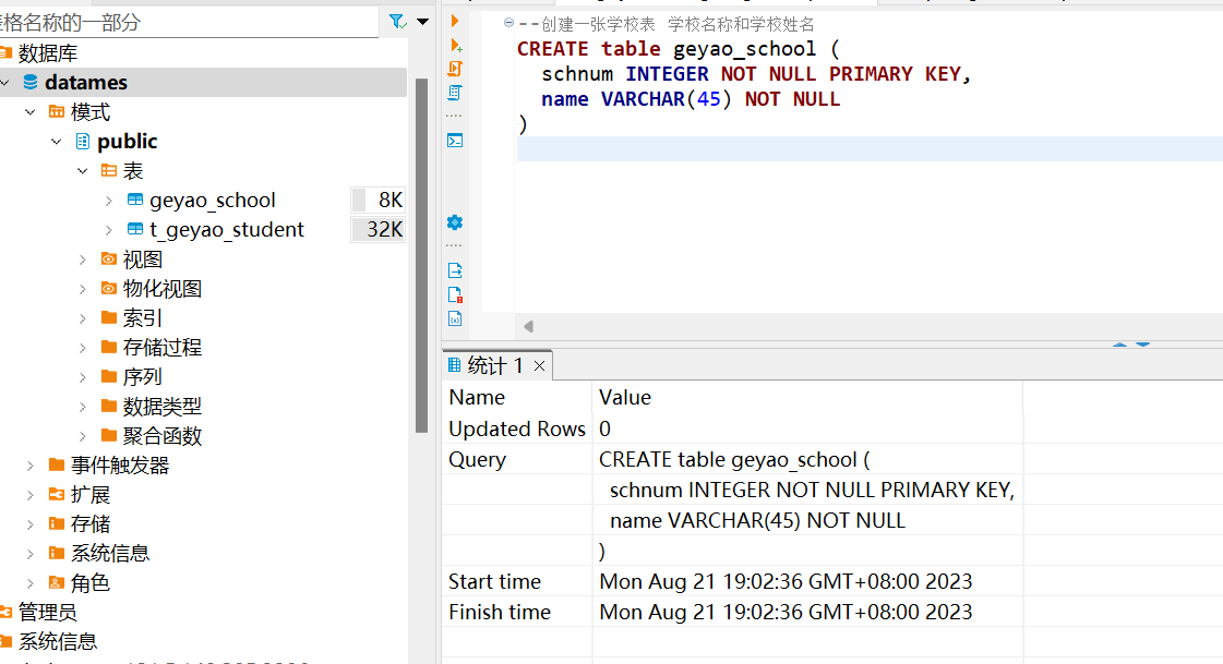 CREATE table geyao_school (