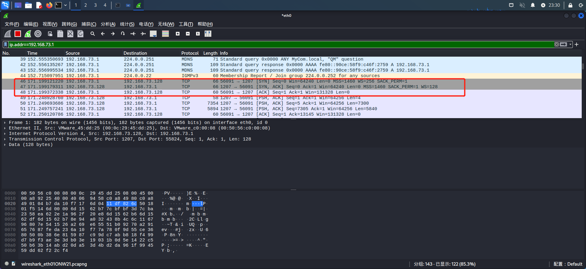 - 主机和Kali机均选好要抓包的网络后开始抓包
