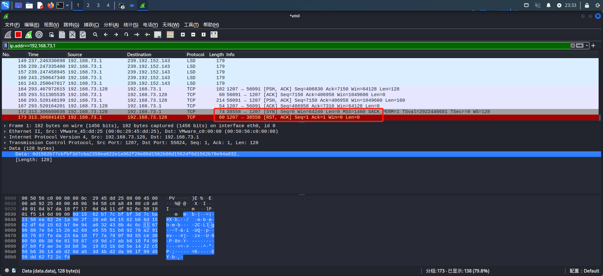 Kali单向企图连接主机[RST包 果然被拒绝了]