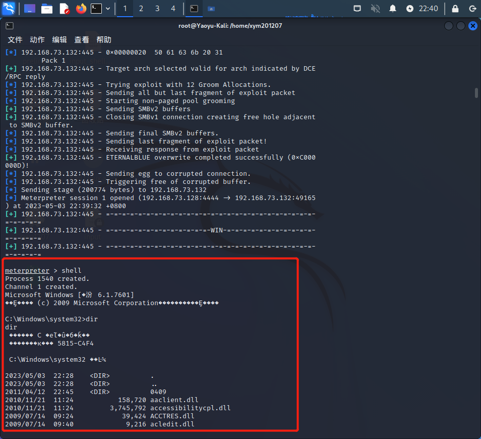 nmap -sS -A --script=smb-vuln-ms17-010 -PO 192.168.73.132(靶机ip) - 如图存在该漏洞