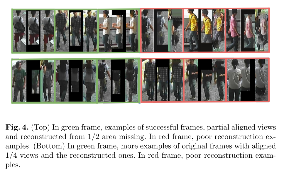 对齐示例更适合提取和比较相应身体部位之间的特征。然而,部分视图可能覆盖不同的身体部位,因此相似性分数可能会有所不同,这不仅是由于视点更改、照明和遮挡,还因为在不同的示例中,不同数量的过滤器被零填充禁用。可以通过尝试根据存在的区域和部件将分数标准化来解决这个问题。然而,这给重新识别过程带来了更大的复杂性,需要特定的解决方案。因此文章引入了Hallucination 块HB,重建图像中缺失的部分。我们的方法的优点是,可以使用任何最先进的人员重新识别方法。此外,考虑到行人的全景,生成大量局部视图以训练Hallucination 网络是很简单的。