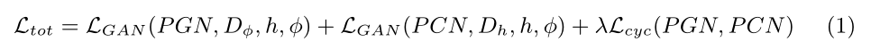 其中,LGAN是对抗性损失,Lcyc是周期一致性损失。