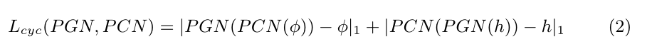 生成器P GN和P CN的目标分别是生成属于域Φ和H的图像,而鉴别器Dφ和Dh则试图在各自的域中区分真假样本。最后,周期一致性损失定义为