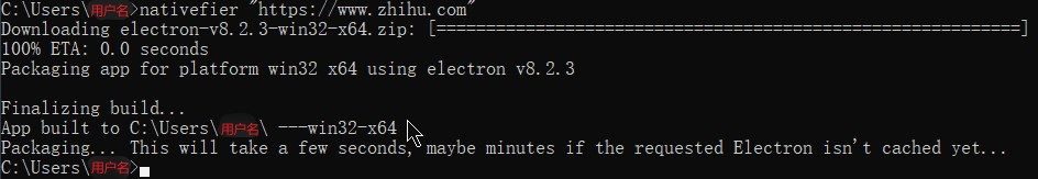 运行完毕, 会生成一个 100 多 m 的应用, 路径一般为C:\Users\用户名\... 如图(用户名打码了, 就是你 PC 用户名):