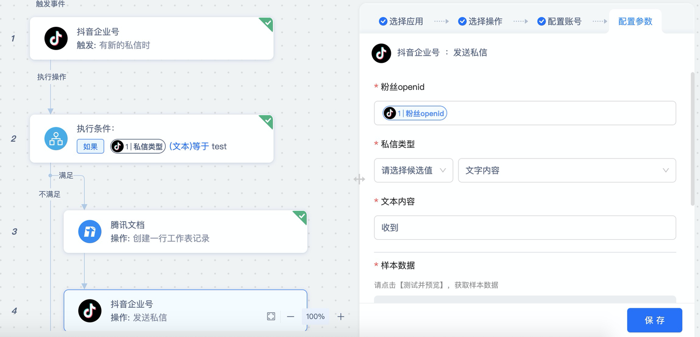一、抖音企业号收到私信时实现自动化录入腾讯文档