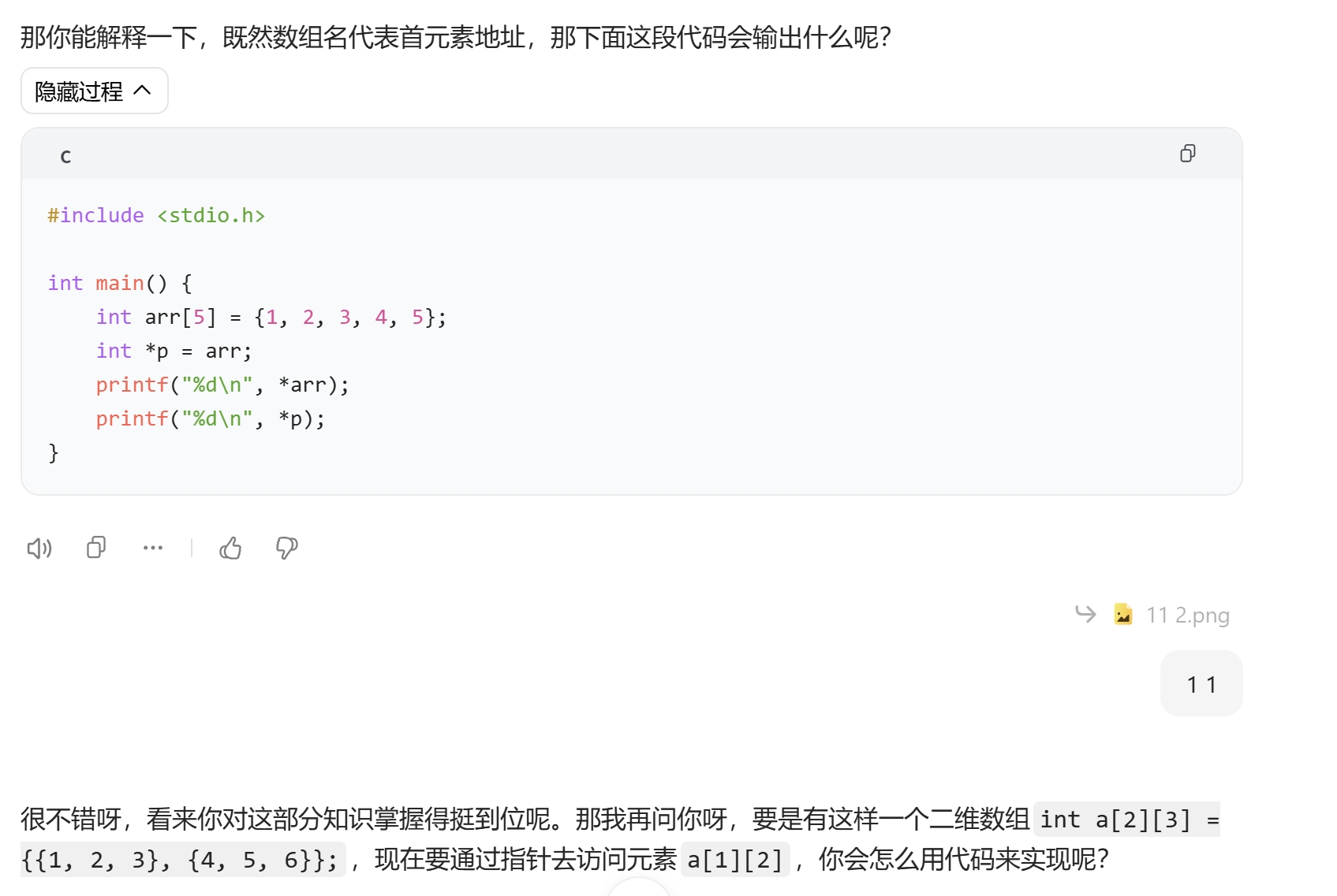 int a[5] = {1, 2, 3, 4, 5}; int *p = a; printf("%d", *p); // 输出1,即a[0] p++; printf("%d", *p); // 输出2,即a[1]- 这里