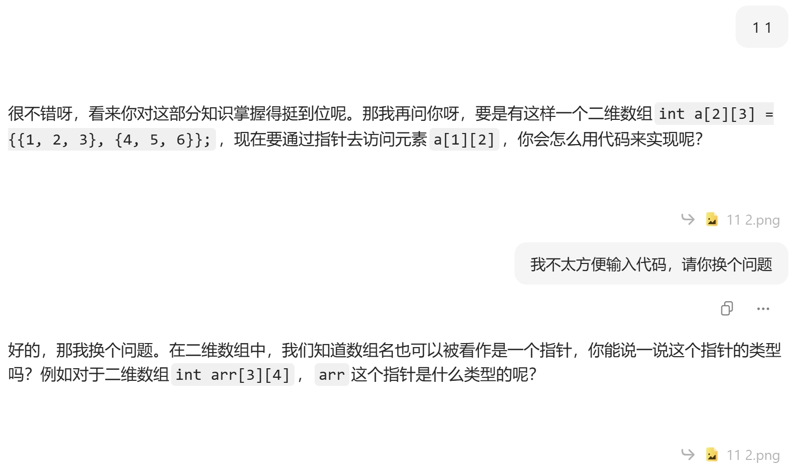 从指针的角度来看,如果我们把二维数组的名字(比如a)看作是一个指针,这个指针指向的是二维数组的第一行(也就是第一个包含3个int类型元素的数组)。如果我们对这个指针进行算术运算,比如a + 1,它会根据二维数组的列数(这里是3)来计算偏移量,实际上会跳过第一行的3个元素,指向下一行(也就是第二个包含3个int类型元素的数组)。