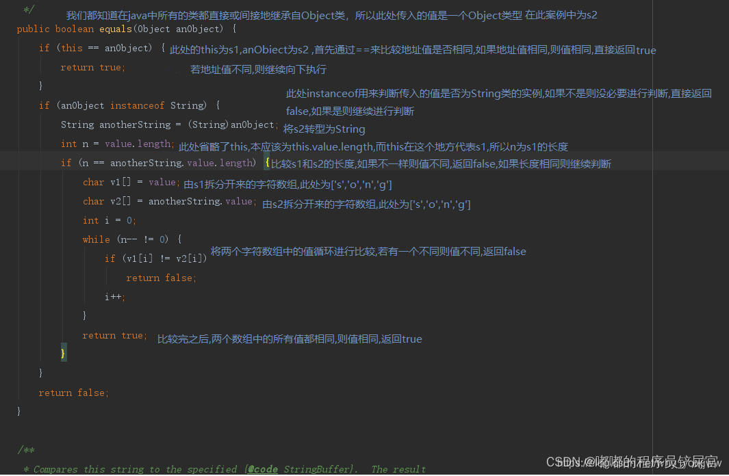 (这种方式需要注意属性的访问权限,后面会用get,set进行访问和设置)public class Test { public static void main(String[] args) { Student admin=new Student(); admin.name="张三"; admin.age=10; admin.classNum=2; admin.address="奈何桥"; //学生信息 admin.stuInfo(); //执行eat()方法 admin.eat(); } }关于对象的比较(==和equals()):