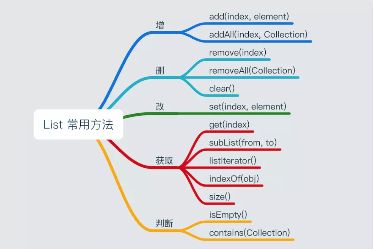 public static void main(String[] args) { //创建List对象 List<String> list=new ArrayList<String>();//多态 //集合初始化 for (int i = 0; i < 10; i++) { list.add("数据:"+i);//数据0,数据1.....数据9 } System.out.println("遍历集合:"); //遍历结合 for (String str : list) { System.out.println(str); } System.out.println("获取序号为0的值:"); //获取集合指定位置的值 System.out.println(list.get(0)); System.out.println("获取集合末尾的值:"); System.out.println(list.get(list.size()-1));//list.size()获取集合的长度 System.out.println("序号为0的值被移除之后,序号0的值变为了:"); //删除序号为0的值 list.remove(0); //获取序号0的值 System.out.println(list.get(0)); }