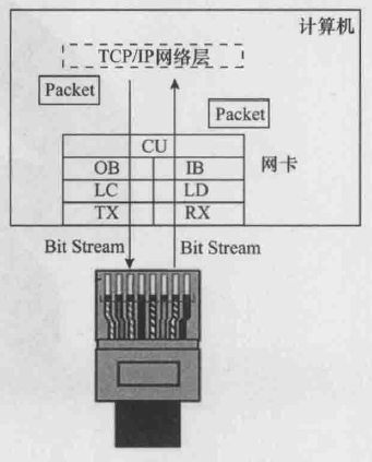 1.计算机的应用软件产生待发送的原始数据,通过应用层、传输层、网络层产生IP数据包,网络层将IP数据包传给CU,CU将每个IP数据包封装成以太网帧(Ethernet Frame),之后将帧传递给OB;