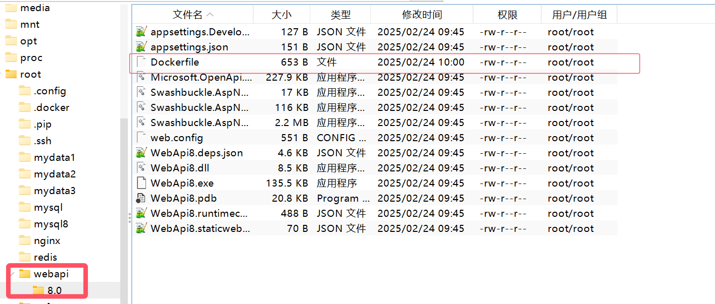 这里webapi部署成容器就是把依赖的环境和发布包的内容整合到一起,最后通过Dockerfile中的 ENTRYPOINT ["dotnet", "webapi8.dll"] 运行该项目。