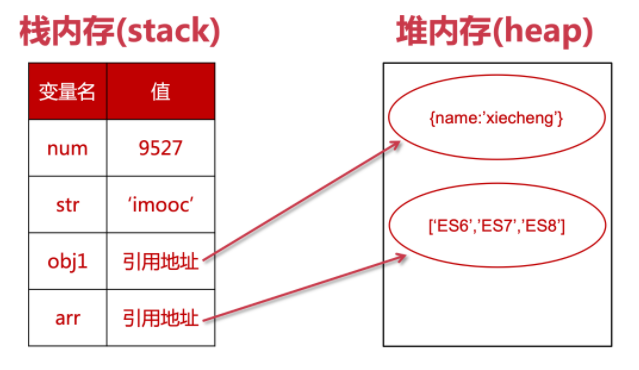 【基本数据类型存储在 栈内存 中,引用数据类型存储在 堆内存 中然后在栈内存中保存 引用地址,对于引用类型而言,const 实际上保证的并不是变量的值不得改动,而是变量指向的那个内存地址所保存的数据不得改动。】