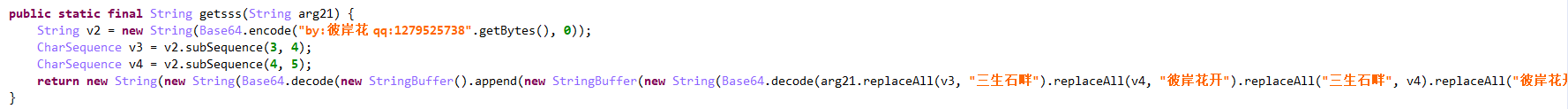 解密算法:利用Base64加密自定义字符串转换的字节数组,使用subSequence()截取字符串得到一个新的字符序列,再用Base64进行解密得到明文。此处解密出的PIN密码为3366。