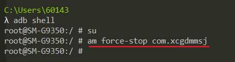 进入su模式,再使用am force-stop com.xcgdmmsj便可强制杀掉这个进程。
