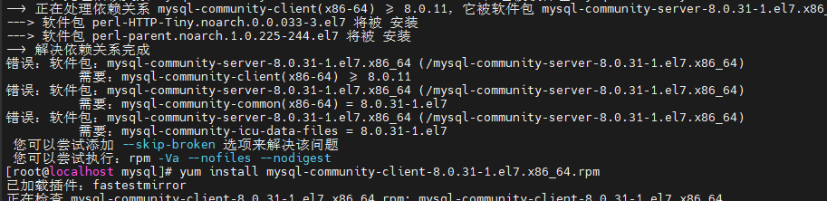 yum install mysql-community-server-8.0.31-1.el7.x86_64.rpm