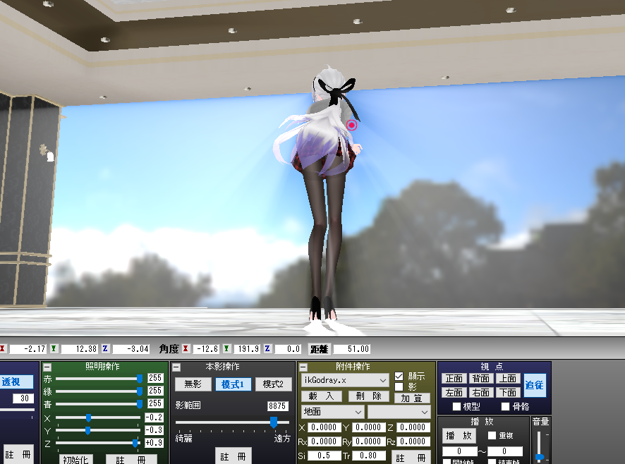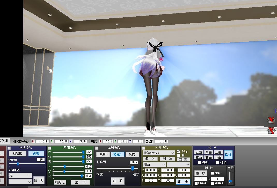按需选择ikGodray.x或者ikGodraySun.x,并在MME的MaskMapRT选项卡中取消选中Skydome。