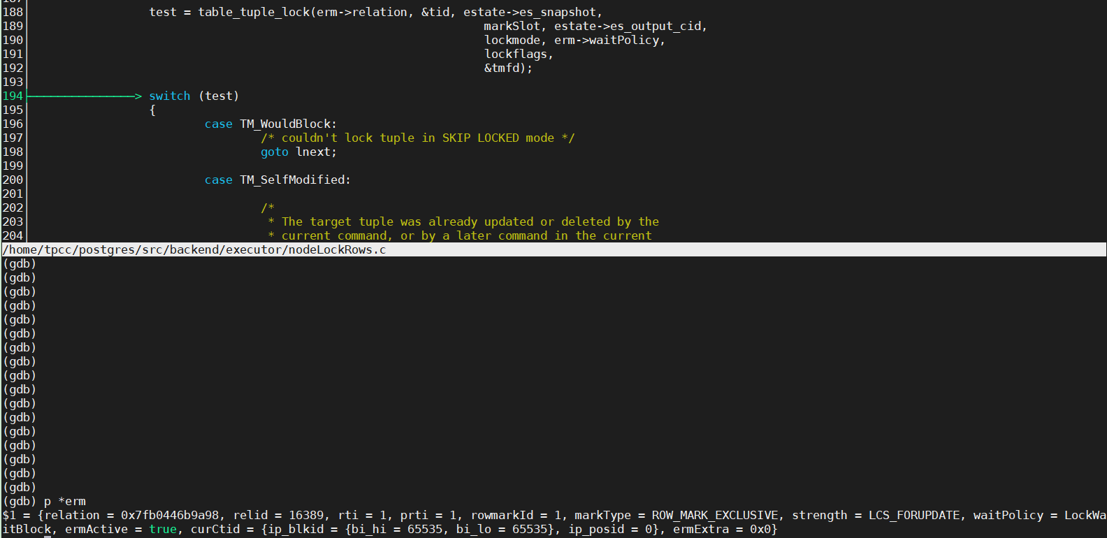 test = table_tuple_lock(erm->relation, &tid, estate->es_snapshot,
