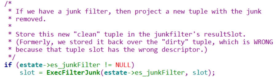 其实这个和数据库的执行器获取数据逻辑有关,处理函数为ExecutePlan,在该函数中循环处理每颗Plan并获取对应的所有元组,然后根据前面保存的junk filter信息(ExecFilterJunk函数),获取需要的目标元组。这样,在执行的时候,需要检索Plan中所有表中满足条件的行。