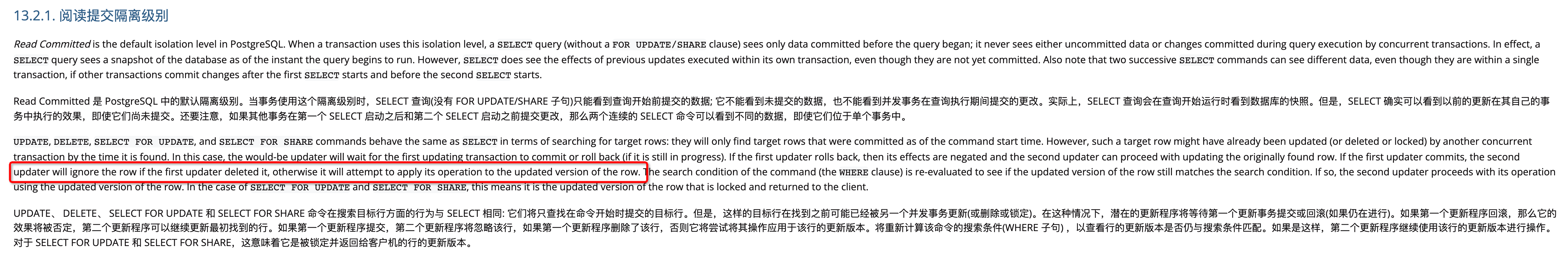 PostgreSQL官方文档:Read Committed Isolation Level