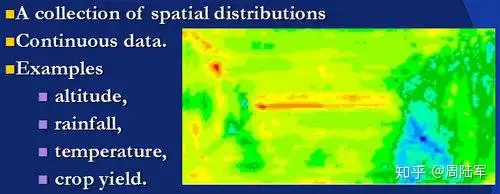 把地理空间的事物和现象作为连续的变量或体来看待,表示了在二维或者三维空间中,空间实体的属性信息被看作是连续变化的数据。例如: