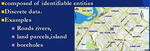 强调了离散对象,将研究的整个地理空间看成一个空间域,地理实体和现象作为独立的对象分布在该空间域中,根据它们的边界线以及它们的组成或者与它们相关的其它对象,可以详细地描述离散对象。