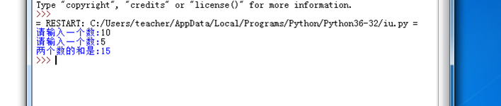 a=input('请输入一个数:') b=input('请输入一个数:') sum2=int(a)+int(b) print('两个数的和是:{}'.format(sum2))