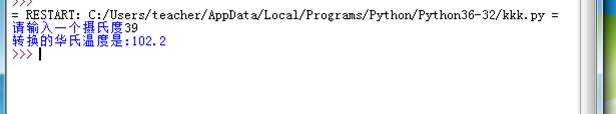 a=input('请输入一个摄氏度') sum2=int(a) * 9/5 +32 print('转换的华氏温度是:{}'.format(sum2))