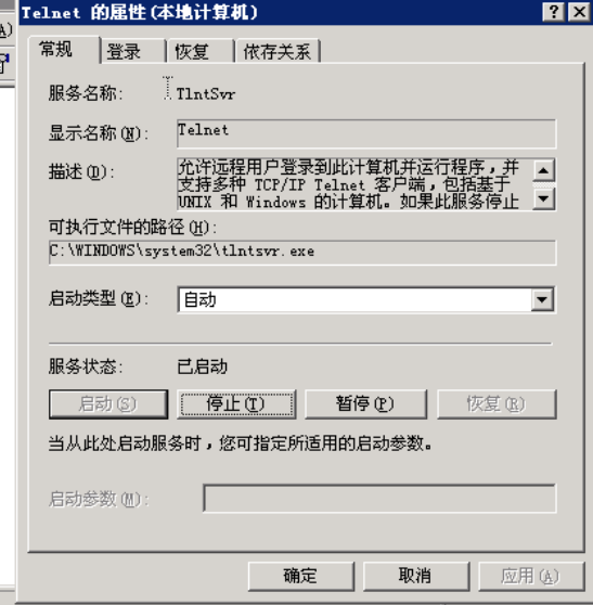 找到Telnet服务,然后更改启动类型为自动,并且启动Telnet服务