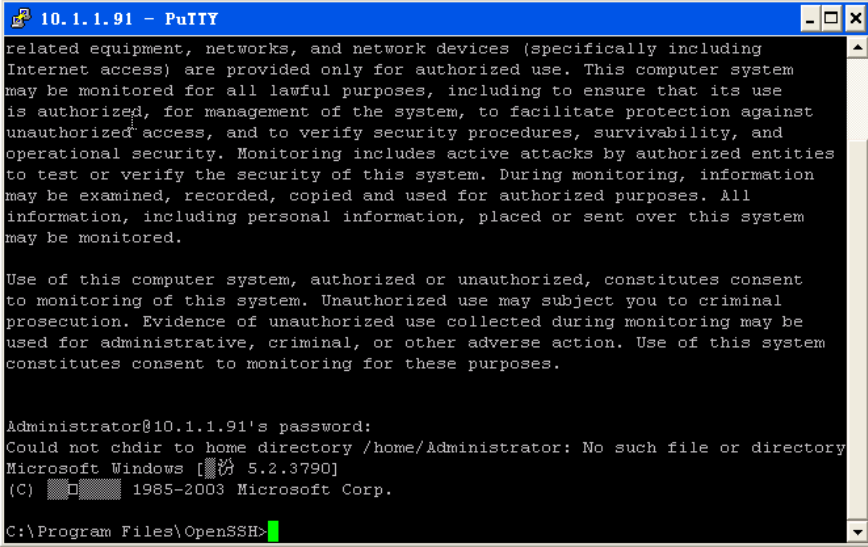 成功登录10.1.1.44,此时的操作如同在10.1.1.44上用命令提示符操作一样。