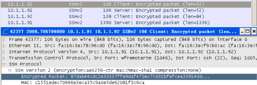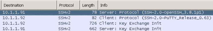 可以看到,server和client使用的软件版本,然后是密钥交换等信息