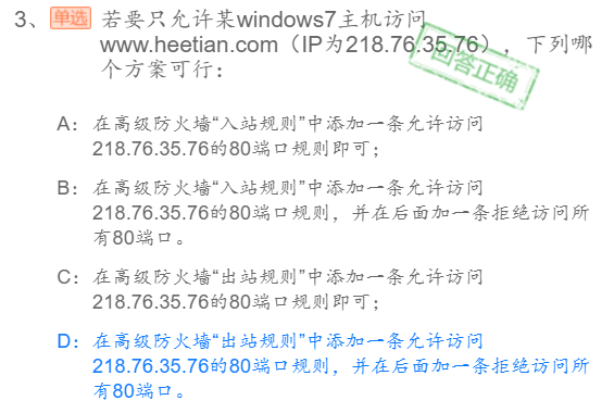 (1)设置出口规则为“阻止对http://tools.hetianlab.com的80端口的TCP连接”(即禁止访问http://tools.hetianlab.com网站)。分为如下若干小步骤: