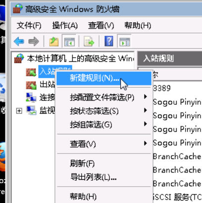 点击“高级设置”,出现“高级安全Windows防火墙”设置页面: