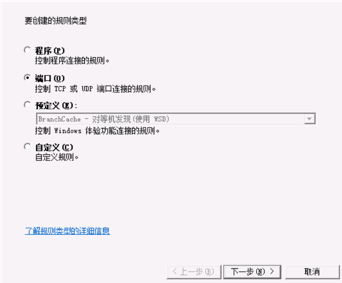 (2)首先是“规则类型”配置,选择“端口”,并点击“下一步”。如下图: