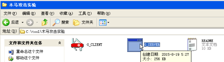 (1)服务器端。打开C:\tool\“木马攻击实验”文件夹,在“冰河”文件存储目录下,双击G_SERVER。G_Server是木马的服务器端,即用来植入目标主机的程序。此时,会弹出“Windows安全警报”窗口如图,点击“解除阻止”,木马的服务器端便开始启动。(如果防火墙已关闭会直接运行不会弹窗)