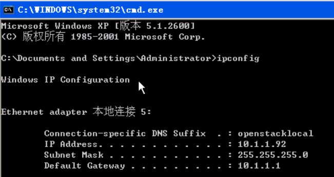 在“cmd”模式下输入“ipconfig”,如图查询ip界面
