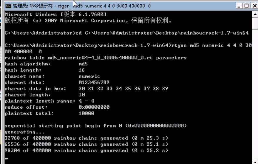 使用命令:rtgen md5 numeric 4 4 0 3000 400000 0
