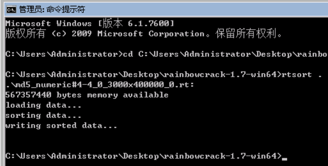 切勿中断rtsort程序; 否则被分类的彩虹表可能会被损坏。
