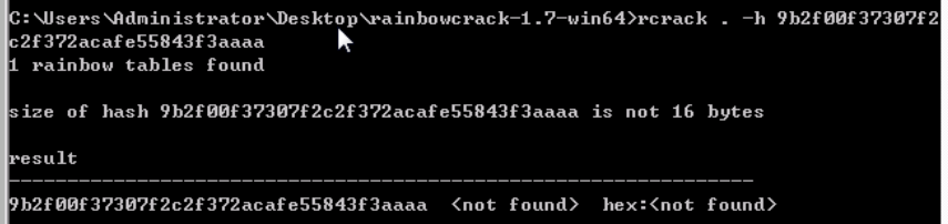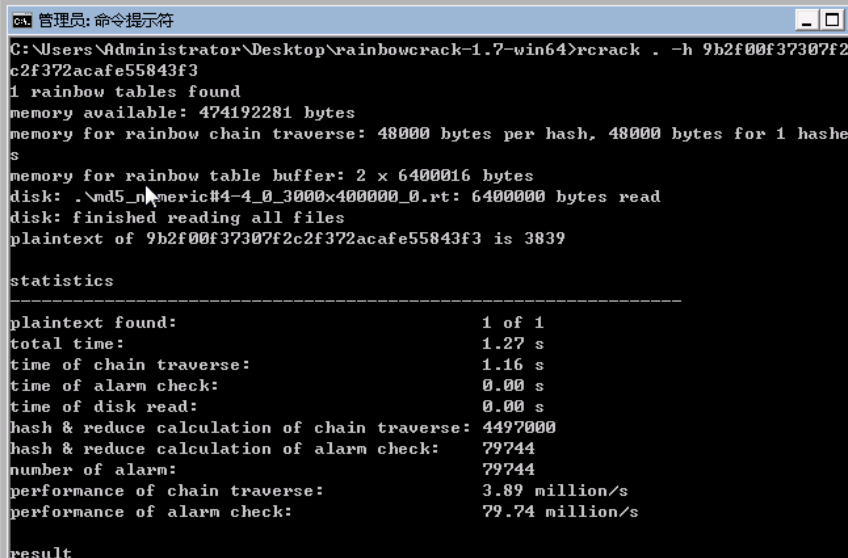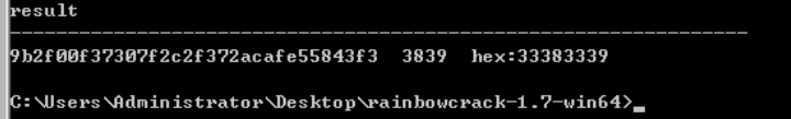 对于单个的哈希值,我们可以直接用rcrack.exe . -h hashnum来进行破解: