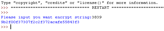 1.使用任意一种语言,对特定的四位数字进行MD5加密(例如‘3839’),输出加密后的结果