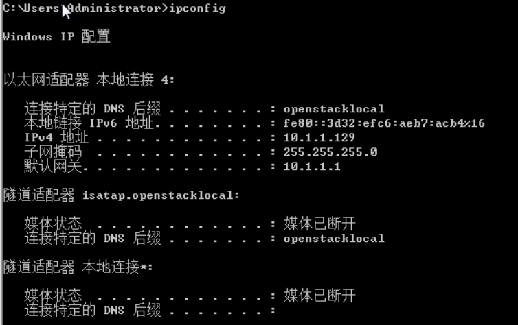 (1)查看win7漏洞主机的登录用户及网络配置信息,从下图2可以看出漏洞主机IP为10.1.1.129。使用命令如下:ipconfig 查看网络配置信息