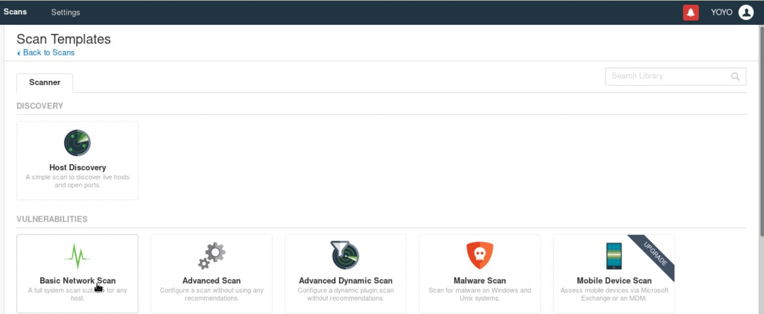 新建一个扫描,依次选择“New Scan”-“Basic Network Scan”,如下图所示。